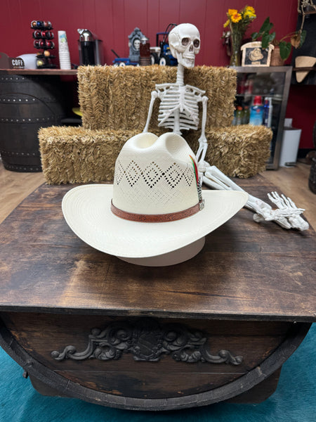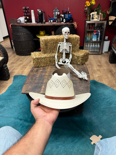 Sinaloa style with a medium crown of 4 3/4” and brim of 3 1/2” .